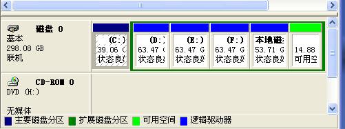 将没有文件的E F 两个盘的可用空间分配到其他盘符也可以。