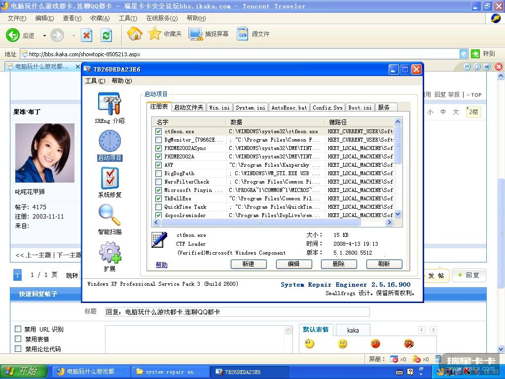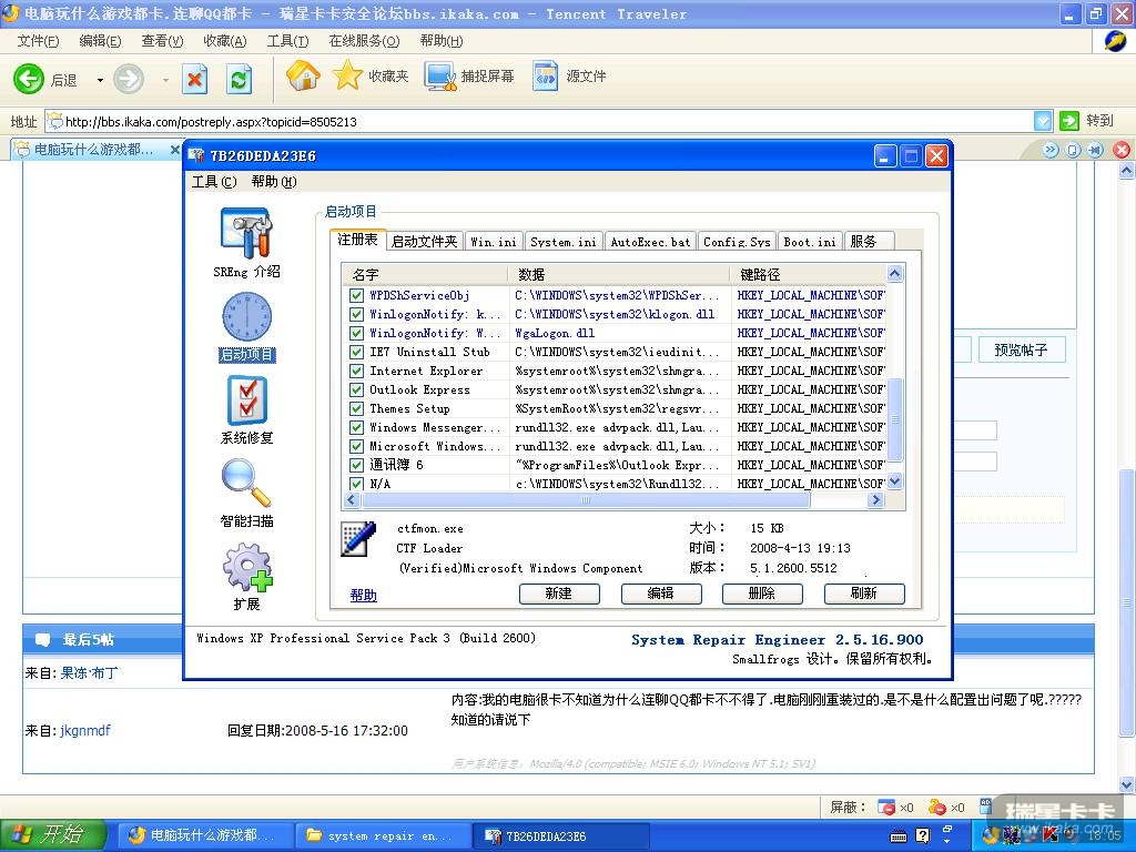 用SRENG2直接删除启动项中的QQ游戏加速器