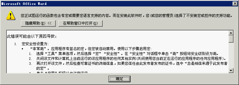 每次打开WORD文档总是提示两次,实在是麻烦,我设置了安全性为“低”都还提示,不知是哪里的问题。