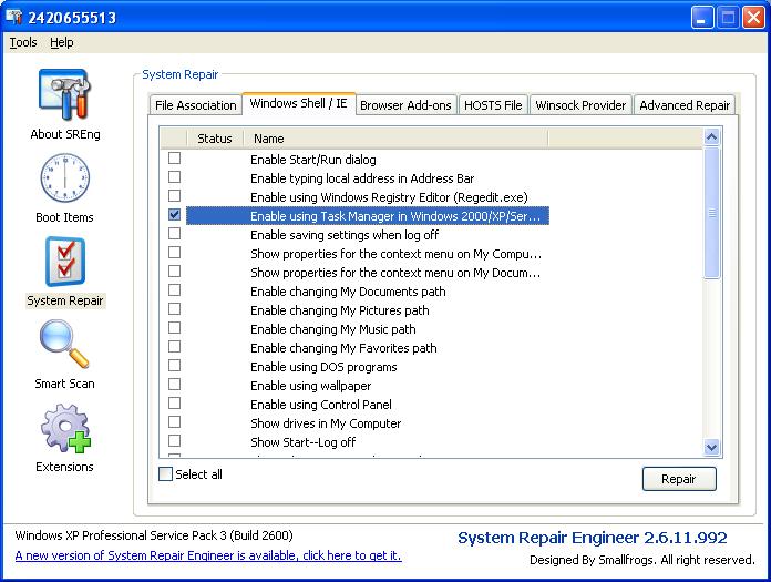 因病毒导致xp无法启动,后将硬盘拿到其它机子上杀毒,可以启动了,也升级瑞星,全盘杀毒。现在就是任务管理器执行不了,其它还看不出问题。