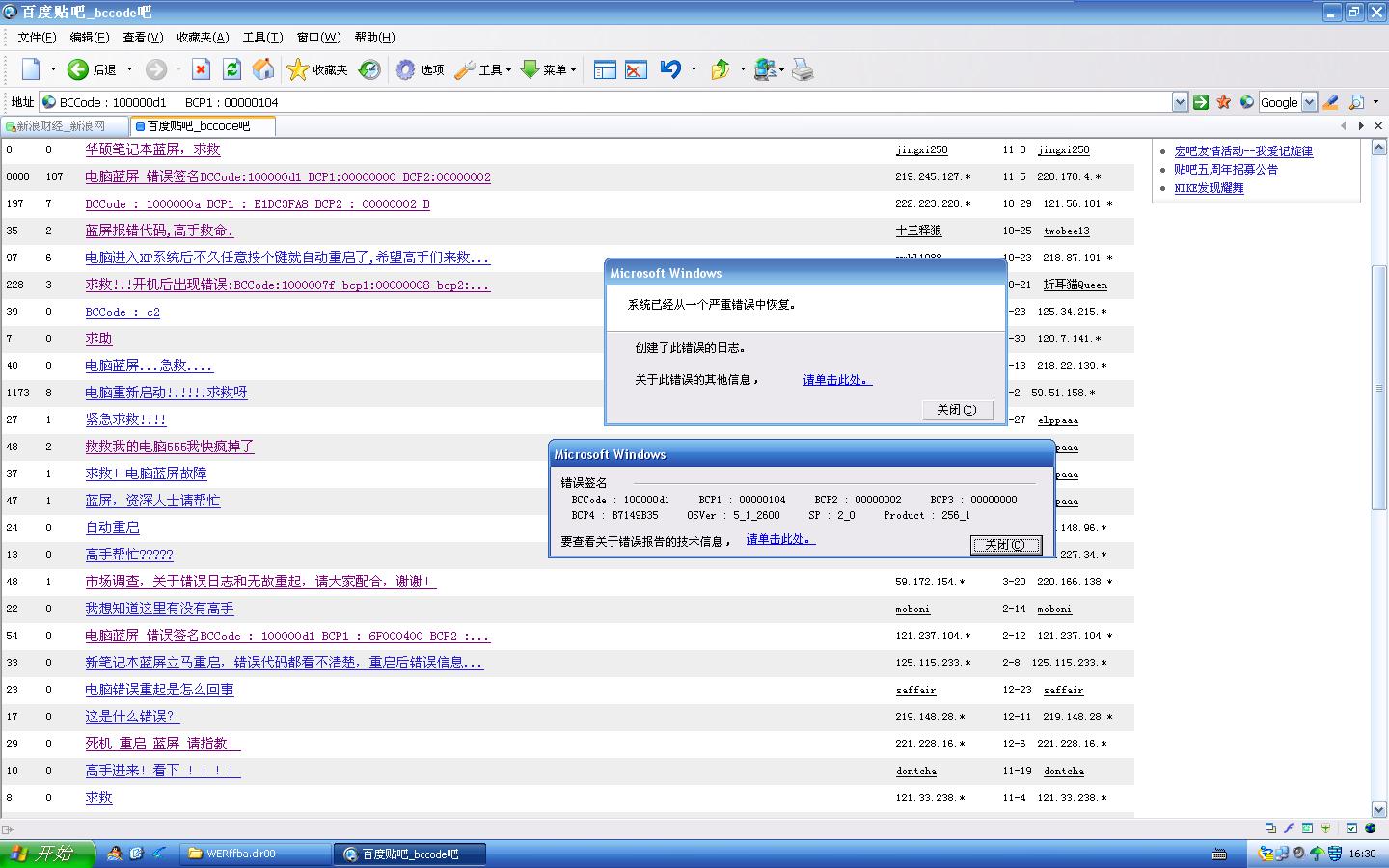 但这只是个治标不治本的方法。你应该到“开始--控制面板--管理工具--事件查看器”里查看到底是什么东东引发的这个毛病。