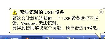 今天一大早起插上手机下东西,却发现右下角显示无法识别的USB设备.下图1