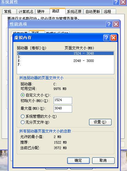 这样设置虚拟内存行吗?一个在E一个在C