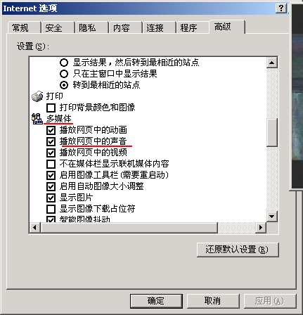 我的IE是IE7的,最近我在自己的网站使用了背景音乐代码,可是,我的电脑就是不能播放代码的音乐,我用另外一台电脑访问,既然可以播放,就是我的电脑不可以,,首先,我申明,我的声卡是好的,播放电影都是正常,播放MP3也是正常的,就是播放网站的音乐代码不可以,我修复了IE,还是一样,高手帮忙下.