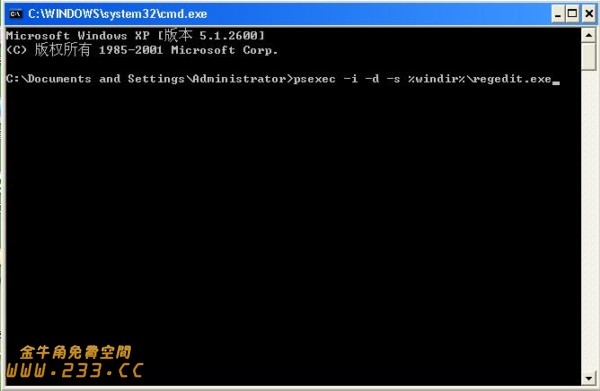 psexec -i -d -s %windir%\regedit.exe (如图3)