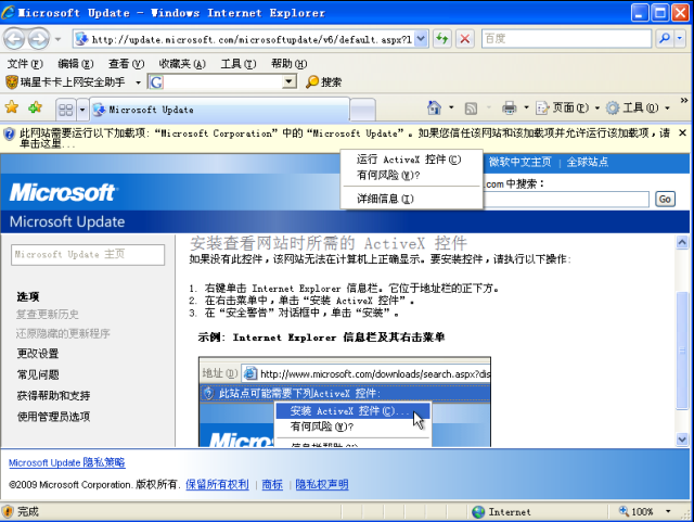 重新安装了一下,但进入微软更新网站后,要么还是会出现运行加载项的提示,而且反复点击“运行