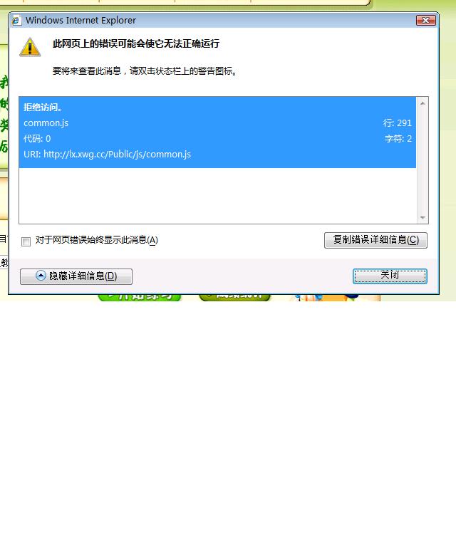 是一个小学生同步练习网站,点开始练习以后,没有反应,然后左下角就出现网页错误的提示,再点开就是上面那个图