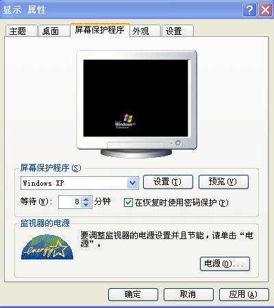 然后在桌面上右击“属性”-》选“屏慕保护程序”选项卡,把“在恢复时使用密码”打钩 ,点确定就OK了。