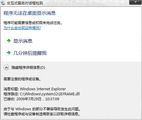 开始输入services.msc 然后找到Interactive Services Detection 右键属性里把它禁用了之后确定-重启试一下.