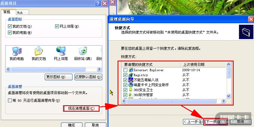 第二天开机,惊奇的发现“我的文档”和“网上邻居”不见了,其他正常,我对电脑略懂,进了桌面图标修改,眼前的画面让我呆住了,所有的勾全都是打着的。我傻了,把勾取消后应用又打上再应用没效果,我开始急了,怎么回事?难道中毒了?