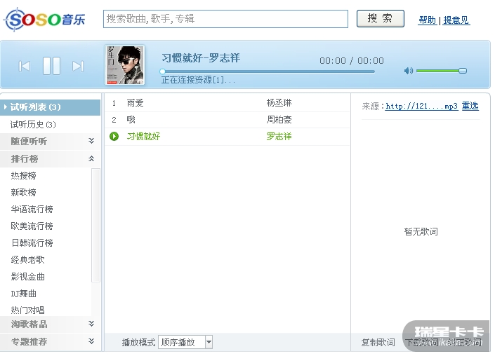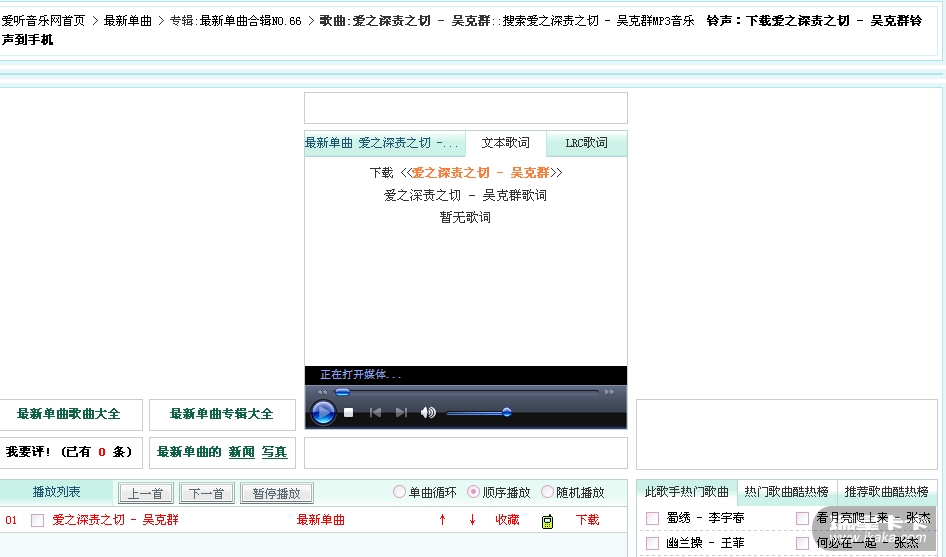 我来学校后用的局域网,来到平时听歌的网站,发现歌都听不了了。比如一听、爱听、好听等这样的网站都不能听了,但连接到QQ空间里的网络音乐里却能播放。搜搜音乐也不能听。