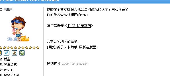 受到海生的悄悄话,说我蓄意挑起其他会员对论坛的误解,天大的冤枉,还减50经验