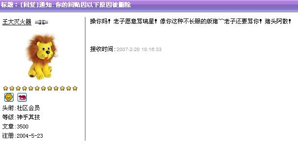反过来骂我 禁个三天 好好反省.. 偶不是靶子..也不是随便给你喷的对象..