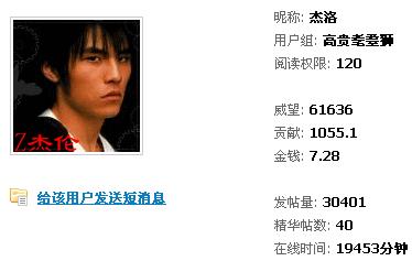 在下每天都上论坛,每次都是来了点“登录”,走了点“退出”。两个月前在下的“在线时间”就是19453分钟,如今两个月过去了,“在线时间”就如同时间静止一般,依然定格在19453分钟。