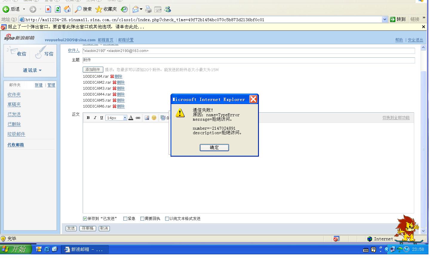 我刚刚发了一封邮件,可它就定格在这个画面注:要看清楚图,请点击图,然后用鼠标的滚轮缩放查看。