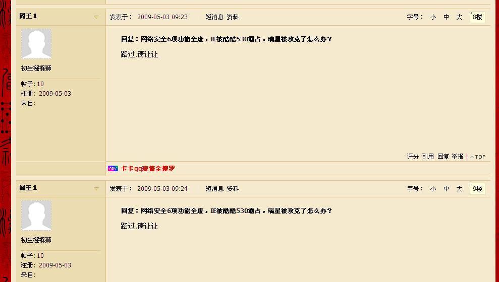 本主题由 卡卡巡查 天下奇才 于 2009-5-3 23:06:15 执行 关闭主题/取消 操作