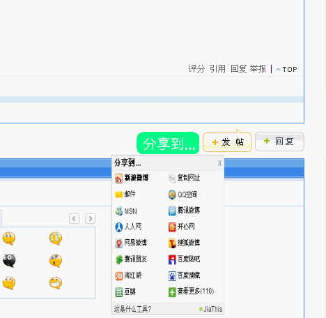 首先,那个工具条很实用,可以分享论坛的帖子到很多的地方,但是放置工具条的位置可能不太合适