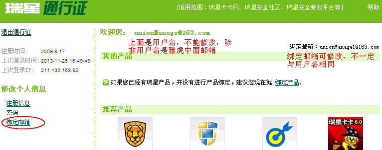 “登录时还是原来的邮箱”,您指的是登录时显示的通行证用户名吗?