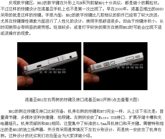 从摩托罗拉的设计师马丁.库帕发明DynaTAC到现在,手机走过的历程其实还不到30年。但即便这样,这件可以人被把玩于手掌中的“小玩意儿”已经发展到让我们难以对其定义的地步。面对一款功能全面的手机,我们可以说它是音乐播放器、是照相机、是PDA……;但似乎也可以说它什么都不是。今天走进PConline评测室的诺基亚 N82就是这样一款功能全面的手机。它是诺基亚N系列的第14位成员,在我们眼中,它还是N系列的“集大成者”。N82在外形设计、硬件配置和产品理念等方面都秉持着纯正的N系列传统。尤其在拍照方面更是有着让人惊艳的进步。想了解更多细节?那么就请大家阅读由PConline手机频道为大家送上的诺基亚N82全球首发评测。
