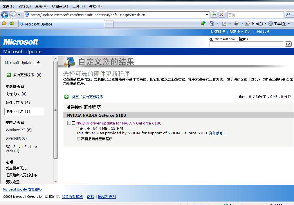 06年买的昂达N61GT主板!在W更新里有个硬件更新.