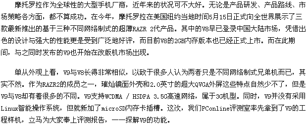 摩托罗拉年度最佳3G手机!V8孪生机V9首发评测