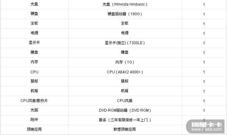 我大概查了一下这些已知的配置,总体感觉属于中低档的台式机,硬盘160G不做评论,CPU不知道是不是AMD 速龙64 X2 4000+,如果是这款主频为2.1GHZ的双核CPU,我想说首先这款CPU属于已经下架过时的CPU,其次,整体是中低档的计算机没有必要安装这么高主频的CPU,内存1G有一些小,不过看楼主做什么用了,如果只上网看电影什么的应该够,但要是玩一些主流游戏如魔兽世界或者极品飞车这种是远远不够的,现在主流内存都是2G的,如果你像我这种程序员的话2G只能算一般,4G的内存才能完全支持多平台的编程。显卡是128显存(我看显卡一般都看显存)网上对这款的评价是性比价比较高,我认为看电影玩游戏应该够了,但要是想追求极端的游戏画面什么的还是不够。比如说《使命召唤6》估计只能在800×600下面流畅的玩游戏