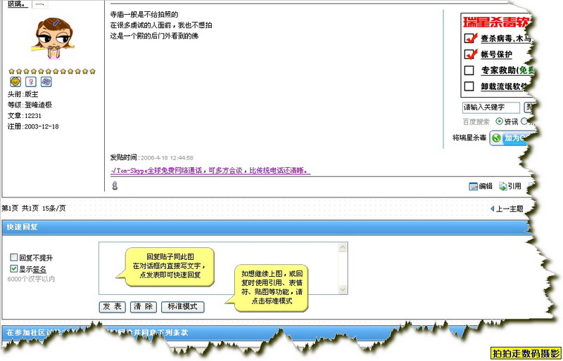 瑞星卡卡安全论坛综合娱乐区影音贴图 【拍拍走欢迎您!】版规·发贴方法'