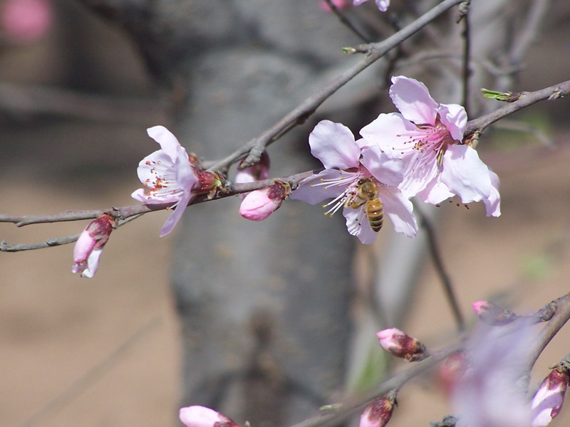 春天到了,花儿开了,辛勤的蜜蜂又开始工作了。