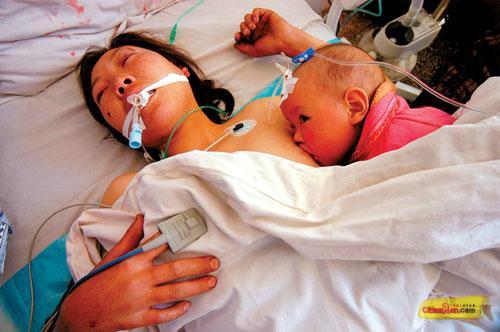 请回帖支持下,祝福母子平安吧!!这位母亲不幸出了事,然而此时已是生命..还没忘喂孩子,这是什么精神----------伟大的母爱.