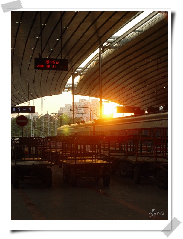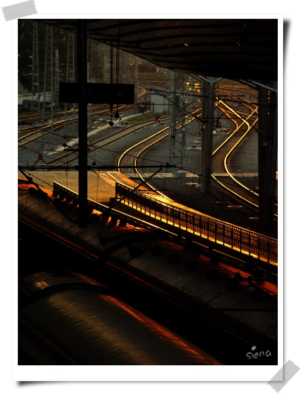 进站时,远处金色的铁轨似在无声的呼唤