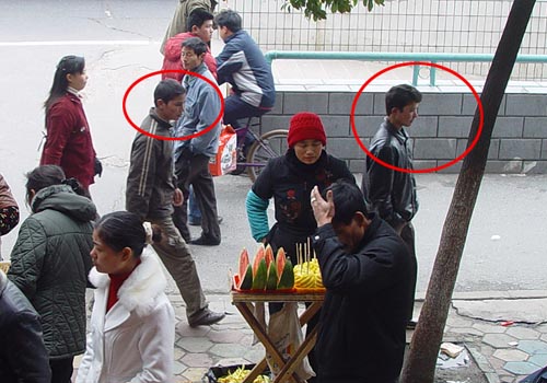 这张图片是新疆小偷们惯用的掏包方式,他们经常在人行横道线路段(因为这里骑车速度慢)三三两两的,贼眼乱转,专盯斜挎包