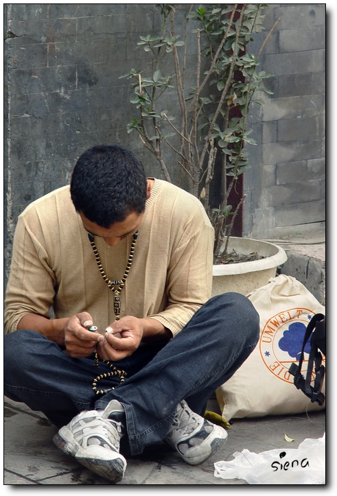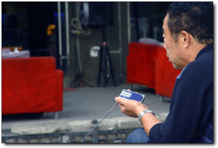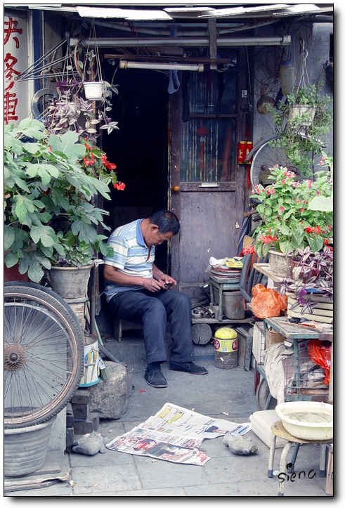 这位北京大爷,还带着值勤的袖标呢,呼呼呼地,在胡同口睡得正香:)
