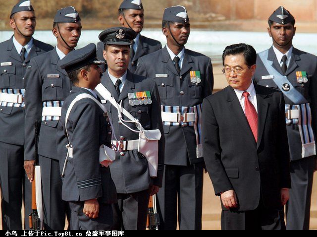 仪式上鸣放礼炮欢迎胡主席到来,他又检阅了印度仪仗队。