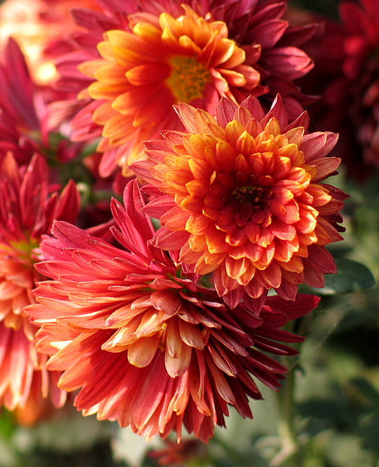 菊花拍得太美了....没话讲!那个红枫的叶子是三个角的吧,真少见啊,好看!