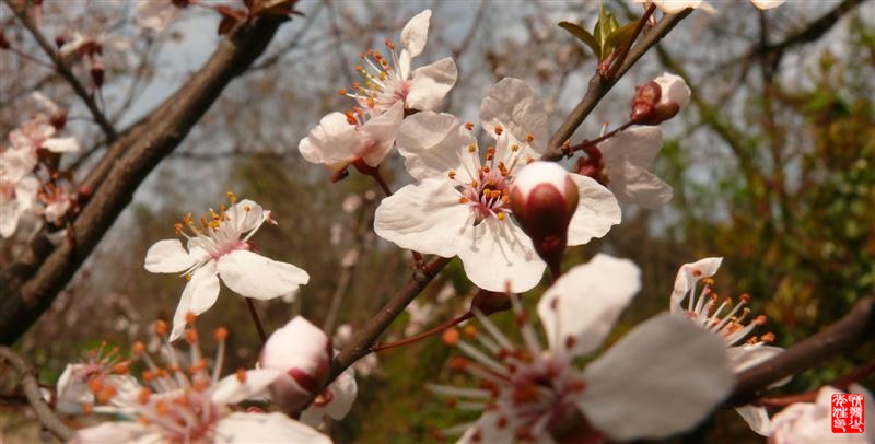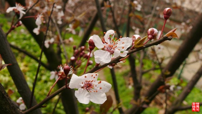 重要更正:不是梅林,也不是梅花。景阳老弟说:叫〔红叶李〕。在此一并致谢。