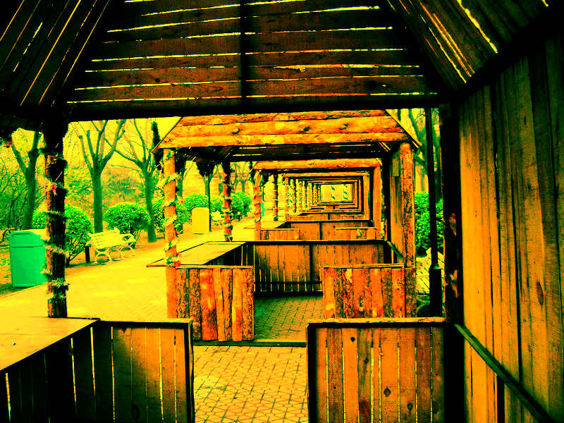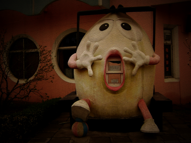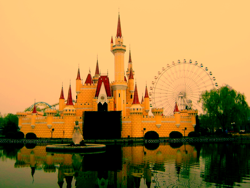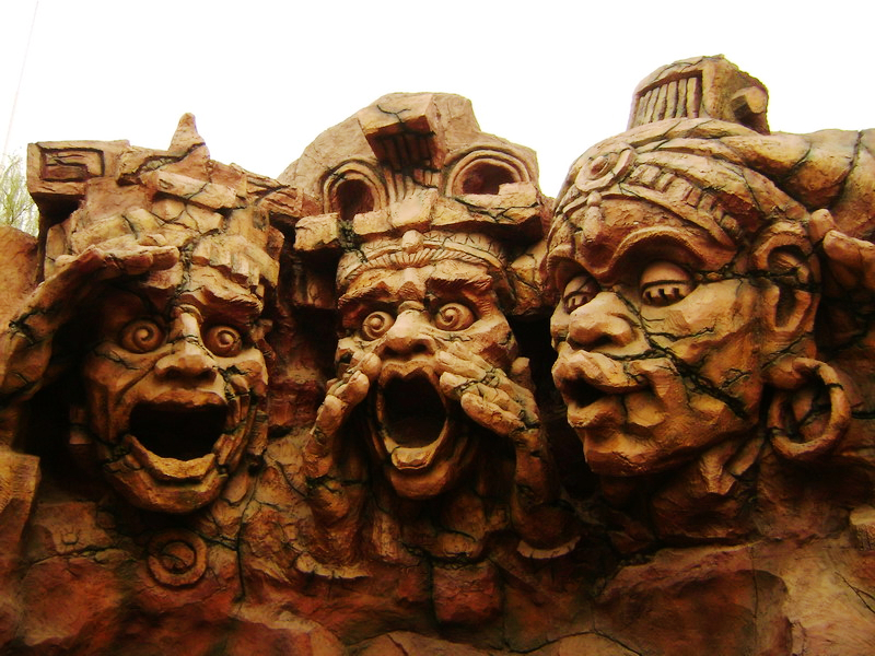 石景山游乐园里的售票厅挺逗,都弄成个小动物或卡通形象。你说的那个大头的嘴,其实就是售票窗口。整个公园被一条铁路分成东西两园。东园不怎么样。-_-