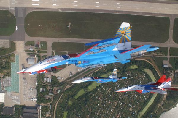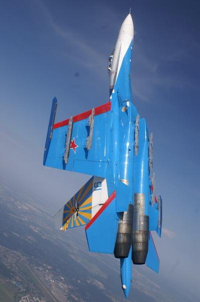 “俄罗斯勇士”成立于1991年,是俄罗斯空军的外交型表演队,采用苏-27战斗机的改进型苏-27UB,是世界上唯一使用重型战斗机表演的飞行队。苏-27是公认的世界现役战斗机中机动性能最好的战斗机之一,而“勇士”们则将其优异性能发挥得淋漓尽致。