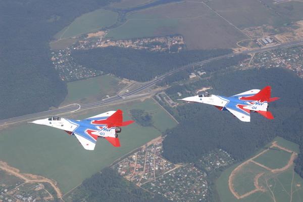 在俄罗斯,已经很少有人能够从飞行中的战斗机上直接拍照,在首都莫斯科上空更是如此。不过,作为专业类的军事杂志,《空天防御》还是有得天独到的机会,可以在空中领略俄空军“雨燕”和“俄罗斯勇士”两支飞行表演队的米格-29和苏-27UB战斗机的风采,并从空中一揽莫斯科郊区的风貌。