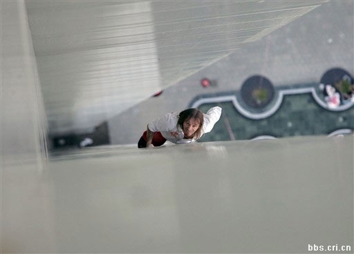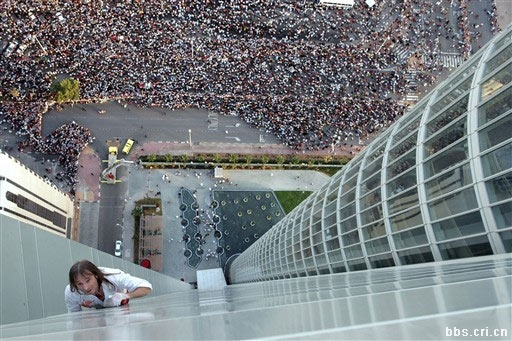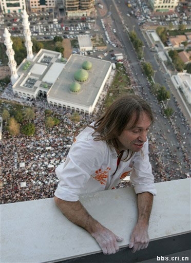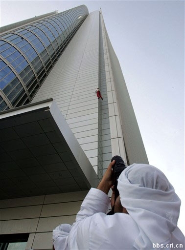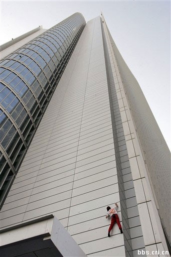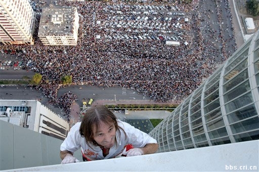 近距离拍摄,他既然没有使用工具!..(相当危险,这是对建筑物的考验,如果瓷片是松的....)