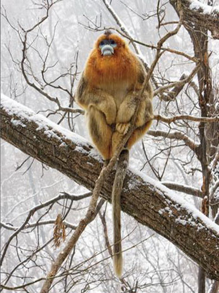 001 濒危物种类获奖作品:金丝猴,秦岭山脉,中国。作者:Jeremy Woodhouse,美国
