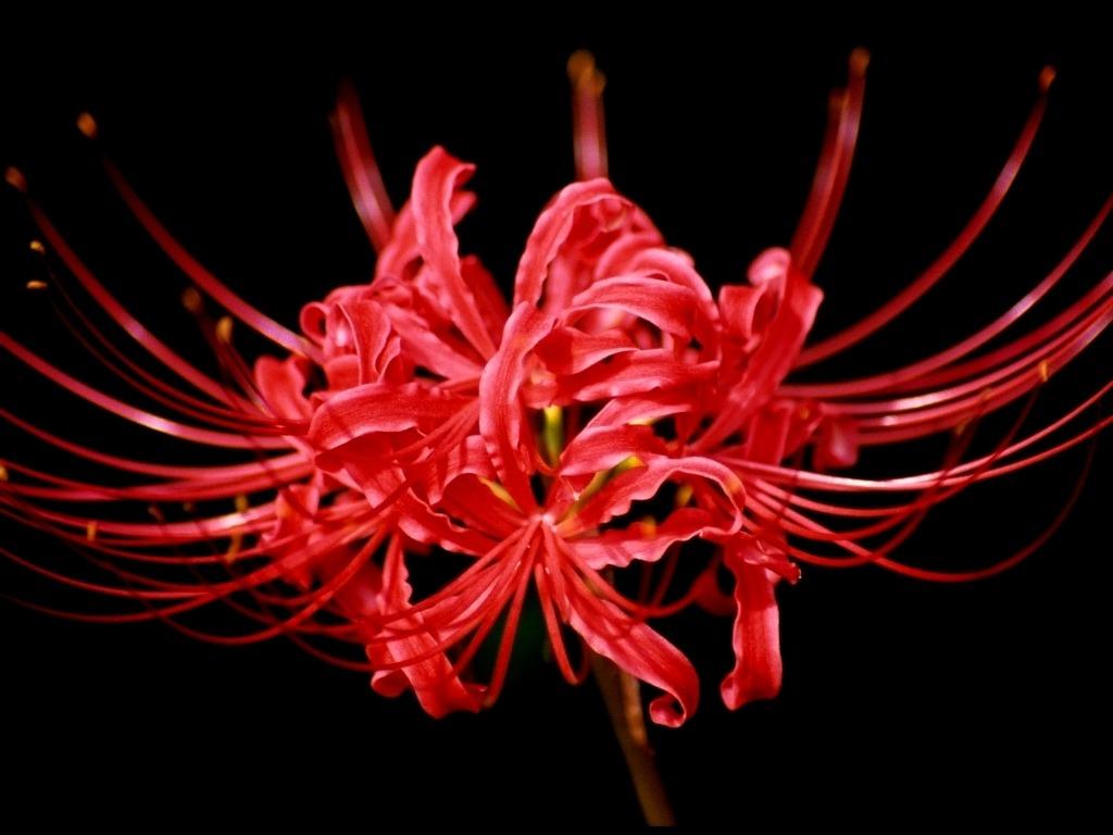 曼珠沙华在佛的经典里,指的是盛开在天国的花,它可以辟除邪气,给修行者在坎坷的修行路上给予扶助。记的有艳影有魅声的梅艳芳也唱过一首《曼珠沙华》的歌,飘荡的歌声里弥漫了梅艳芳自己的艺人心路,和一点对人世的想望。蔓珠莎华的美,是妖异、灾难、死亡与分离的不祥之美。或者是因为它深艳鲜红的色泽让人联想到血,也或者是因为它的鳞茎含有剧毒,在一般的文学作品中,它的形象通常是与“疯狂、血腥”之类的概念相联系起来的。