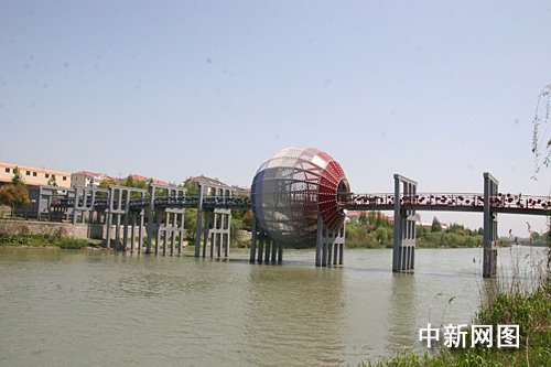 江苏省淮安市南北地理分界线标志工程中的主体标志球已于近日完成外部施工,工人们正在进行内部装修。据现场施工人员介绍,整个地理分界线标志工程将于4月底全部完工。
