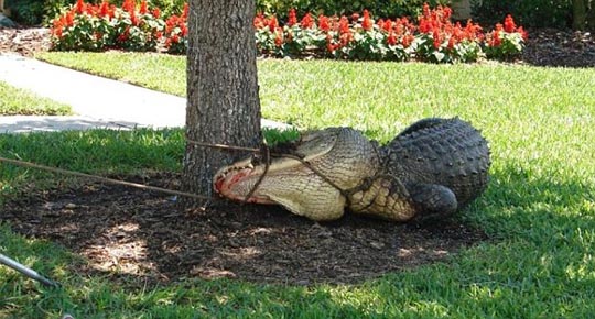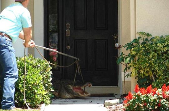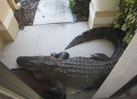 回复: 11英尺大鳄鱼爬到住户门外困住主人