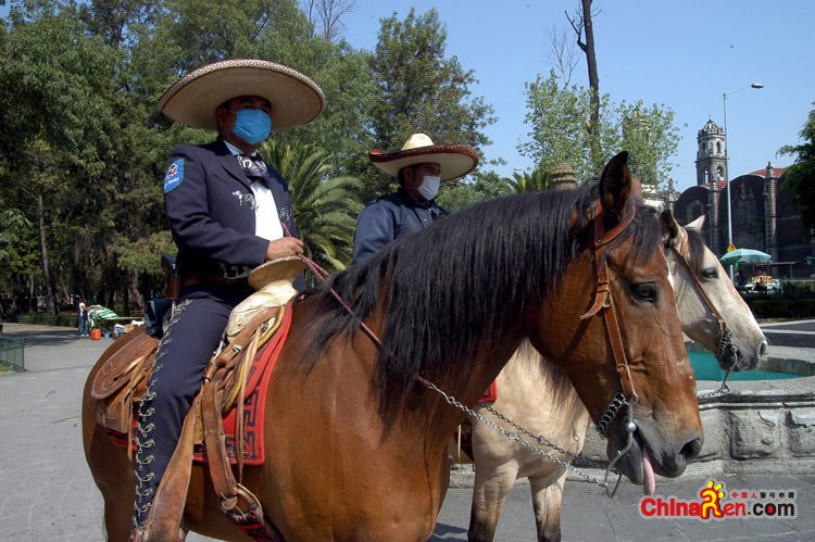 墨西哥促销者在举行促销活动时还戴上口罩。