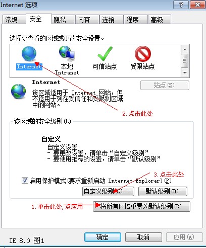 由于安装了Internet Explorer 8 Beta1 或 E7.0 后将IE的安全设置更改了,只需按以下方法即可解决此问题!