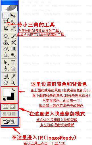 在使用“画笔工具”,“喷枪工具”时,可以按住Alt键临时切换成“吸管”工具,随时选取需要的颜色。