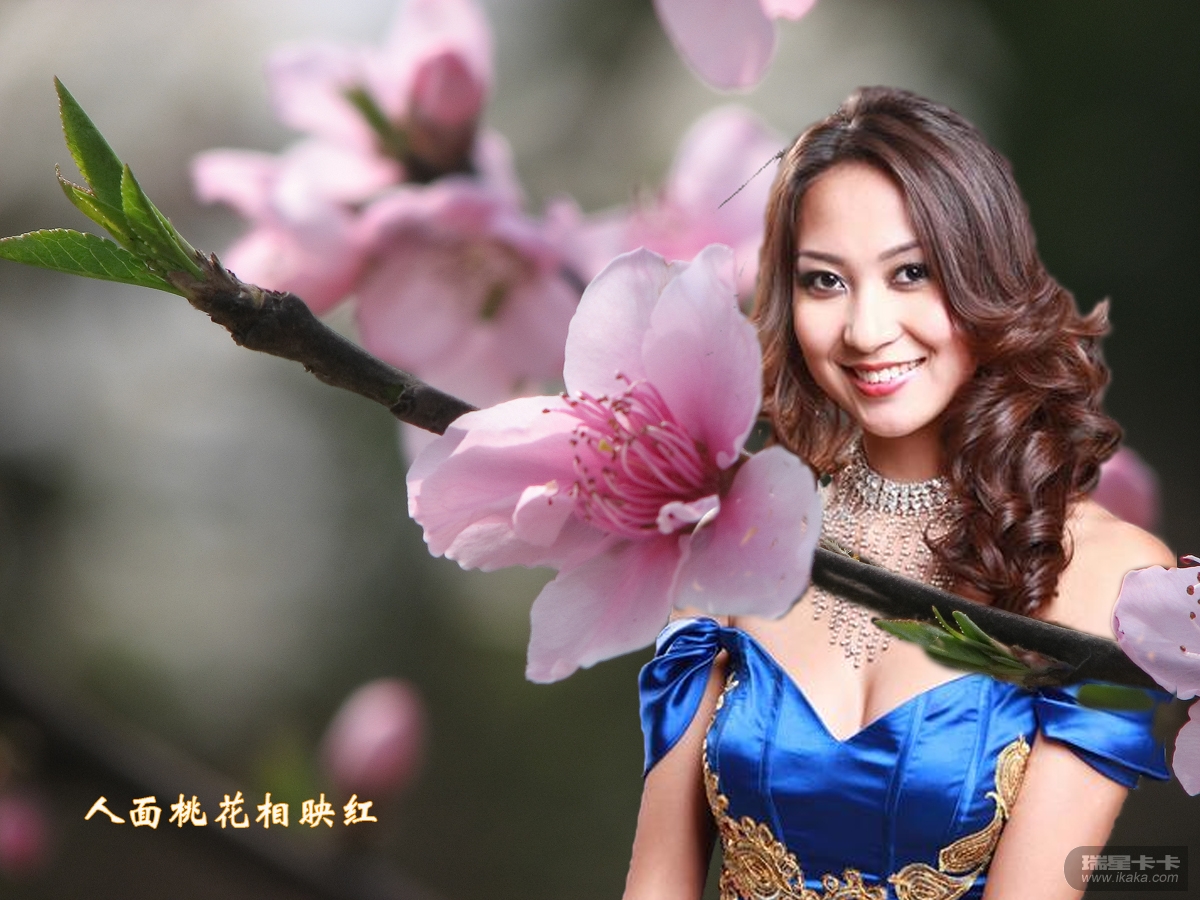 这是蒙古小姐在桃花丛中