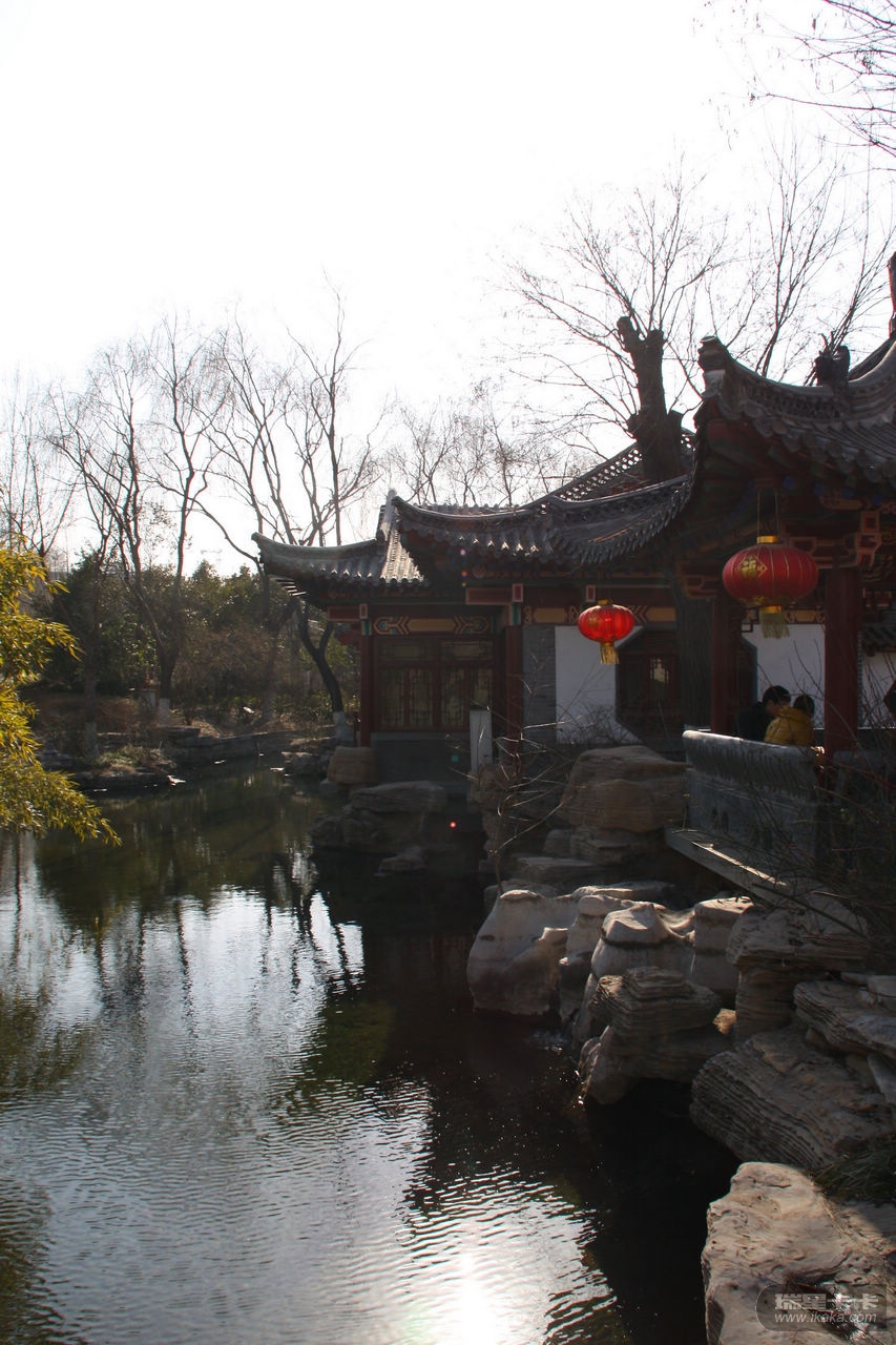 那水呢,不但不结冰,倒反在绿萍上冒着点热气,水藻真绿,把终年贮蓄的绿色全拿出来了。天儿越晴,水藻越绿,就凭这些绿的精神,水也不忍得冻上,况且那些长枝的垂柳还要在水里照个影儿呢!看吧,由澄清的河水慢慢往上看吧,空中,半空中,天上,自上而下全是那么清亮,那么蓝汪汪的,整个的是块空灵的蓝水晶。这块水晶里,包着红屋顶,黄草山,像地毯上的小团花的灰色树影。