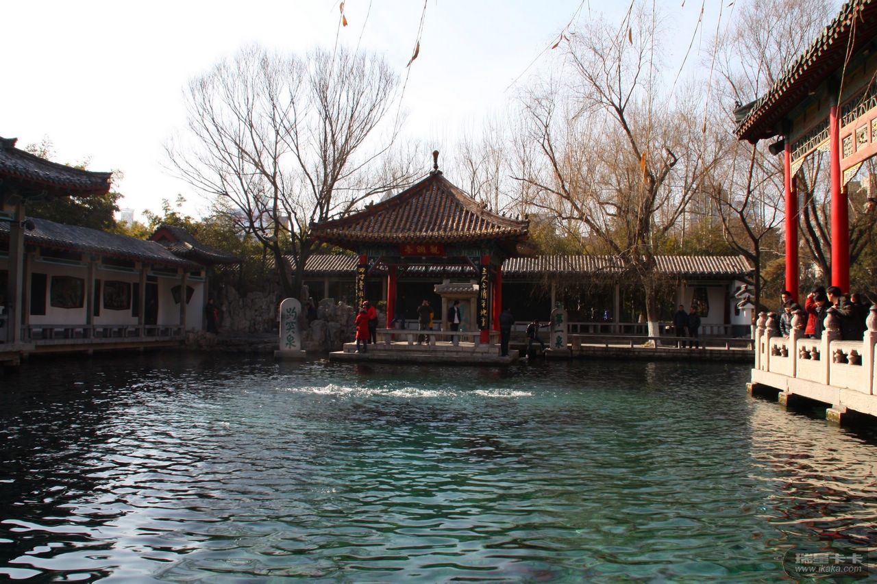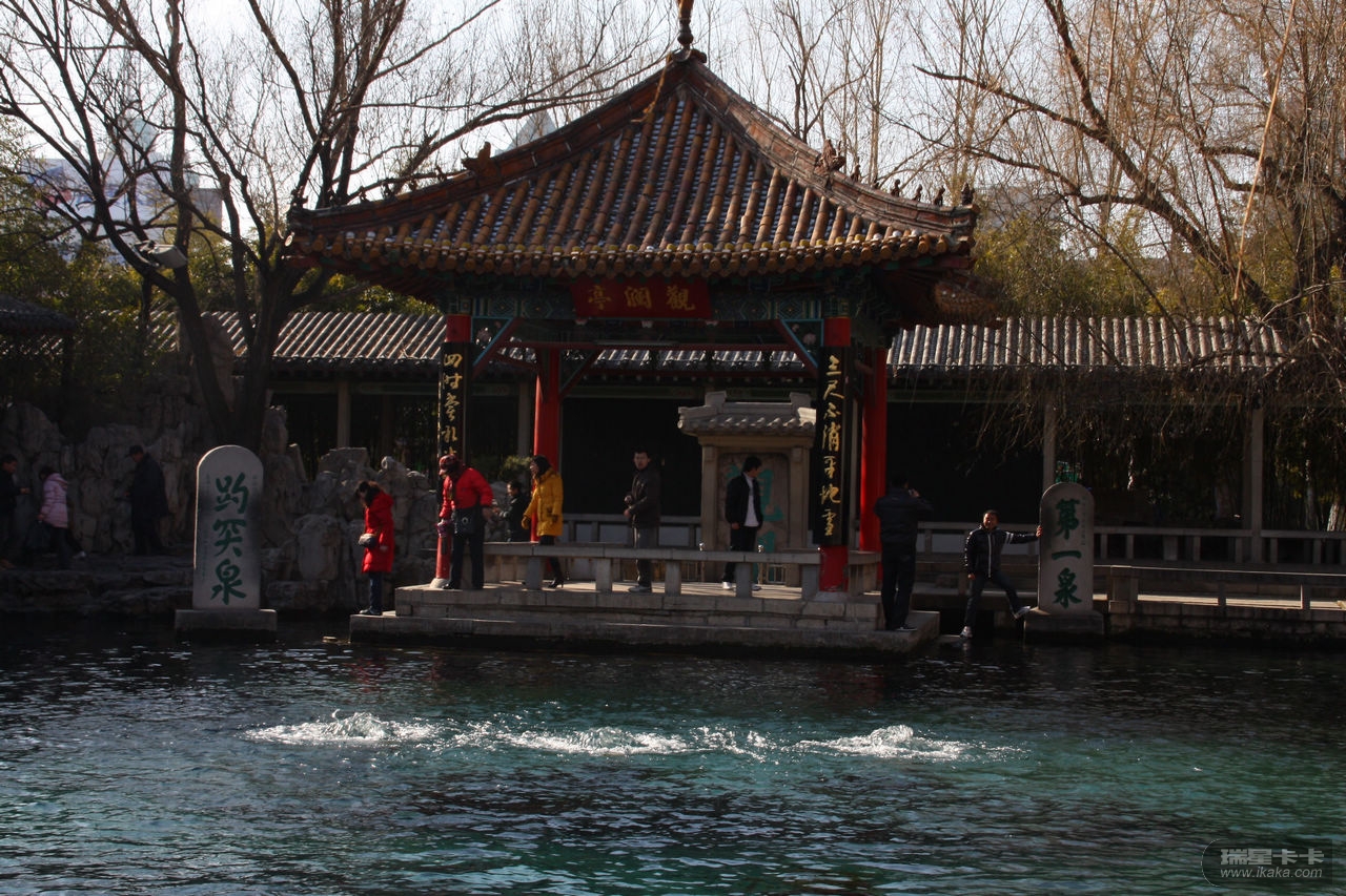 趵突泉水分三股,昼夜喷涌,水盛时高达数尺。所谓“趵突”,即跳跃奔突之意,反映了趵突泉三窟迸发,喷涌不息的特点。“趵突”不仅字面古雅,而且音义兼顾。不仅以“趵突”形容泉水“跳跃”之状、喷腾不息之势;同时又以“趵突”摹拟泉水喷涌时“卜嘟”、“卜嘟”之声,可谓绝妙绝佳。北魏郦道元《水经注》载:“泺水出历城县故城西南,泉源上奋,水涌若轮,觱涌三窟,突出雪涛数尺,声如隐雷。”金代诗人元好问描绘为“且向波间看玉塔”,元代著名画家、诗人赵孟頫在《趵突泉》诗中赞道:“泺水发源天下无,平地涌出白玉壶”,清代诗人何绍基喻之为“万斛珠玑尽倒飞”,清朝刘鹗《老残游记》载:“三股大泉,从池底冒出,翻上水面有二、三尺高”,《历城县志》中对趵突泉的描绘最为详尽:“平地泉源觱沸,三窟突起,雪涛数尺,声如隐雷,冬夏如一”。著名文学家蒲松龄则认为趵突泉是“海内之名泉第一,齐门之胜地无双”。清代康熙皇帝南游时,曾观赏了趵突泉,兴奋之余题了“激湍”两个大字,并封为“天下第一泉”。