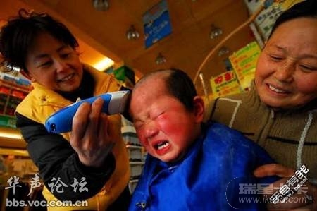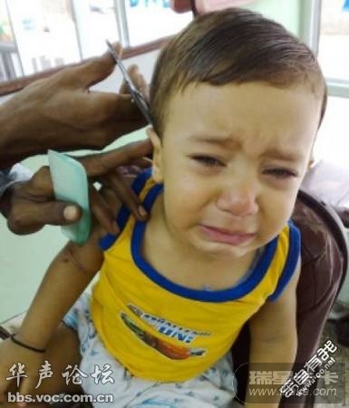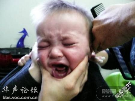 我家宝宝理胎发时也是两三个人帮着才搞定的~